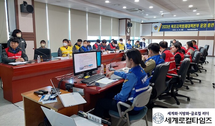 [세계로컬타임즈 김명진 기자] 목포해양경찰서는 대규모 해양오염 사고 시 신속하고 효율적인 방제 조치 능력 강화를 위해 지난 27일 오후 2시 경찰서 소회의실에서 지역방제대책본부 운영 도상훈련을 실시했다.