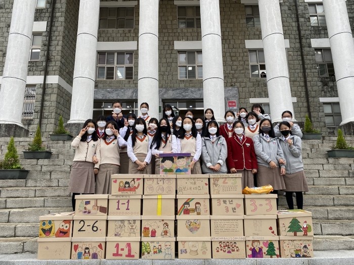 | ▲목포혜인여중, 소외계층 어르신 지원 사랑나눔상자 전달(사진=목포헤인여중) |