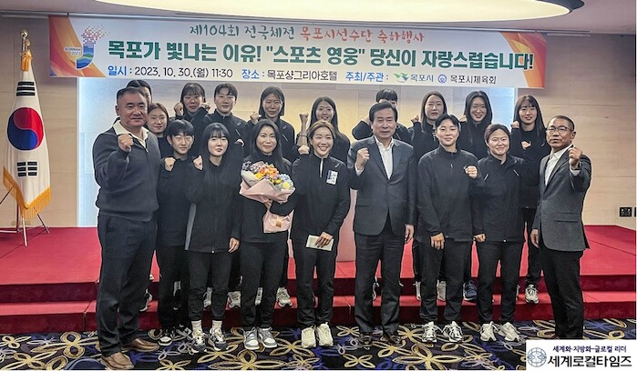 [세계로컬타임즈 김명진 기자] 목포시가 지난 30일 샹그리아비치 관광호텔에서 제104회 전국체육대회에서 우수한 성적을 거둔 선수와 지도자들을 초청해 축하 행사를 개최했다.