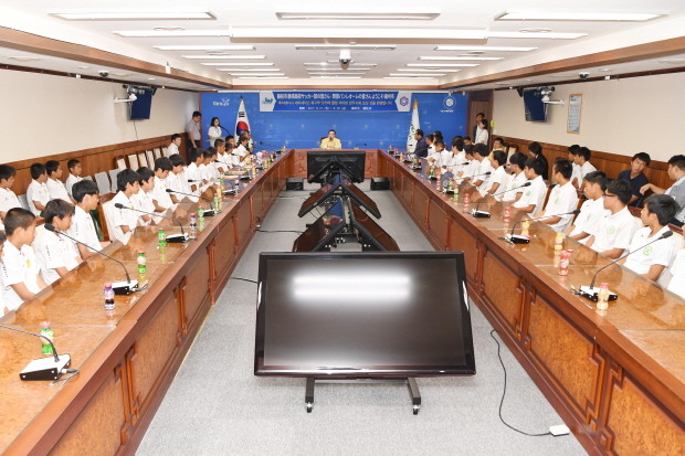 [세계로컬신문 고성철 기자] 경기도 양주시는 자매도시인 일본 후지에다시 중·고등학생 축구단이 22일 양주시청을 방문 이성호 양주시장을 접견했다.