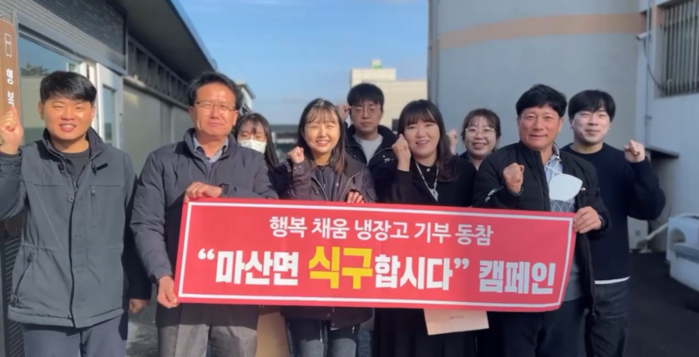 마산면에서는 ‘식구합시다’ 캠페인을 통해 행복채움 냉장고를 활발하게 운영하고 있다. 원덕마을 서상우 이장이 떡국떡, 대상마을 마영자 이장이 손수 만든 반찬 10인분을 기부했으며 면 직원들이 월 3,000원씩 걷어 냉장고 식재료를 채워 나가고 있다.