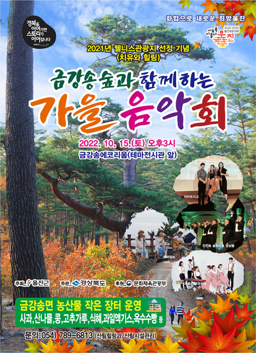 [세계로컬타임즈 이장학 기자] 경북 울진군이 오는 15일 금강송에코리움 테마전시관 야외주차장에서 가을음악회를 개최한다.