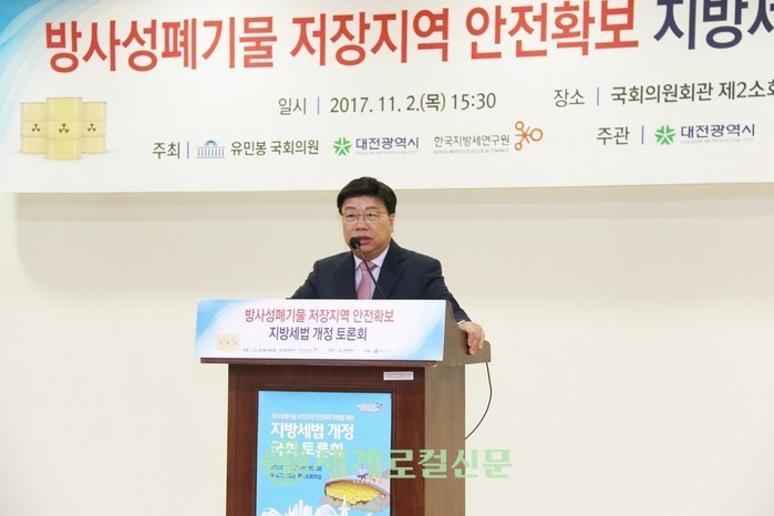 그러면서 “대전은 방사성폐기장 수준이면서 발전소 지역이 아니라는 점에서 정부지원이 없었다“며 ”저장지역 시민안전 대책 확보를 위한 지방세법 개정이 국회의 적극적인 지원으로 조속한 시일 안에 이뤄졌으면 한다“고 말했다.