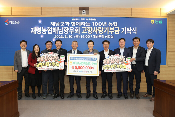김차진 해남부군수는 “해남을 기억하고 아낌없는 사랑을 보내주셔서 무한한 감사의 말씀을 전한다”며 “향우분들께서 보내주신 따뜻한 마음이 헛되지 않도록 목적에 맞게 귀하게 쓰겠다”고 답했다.