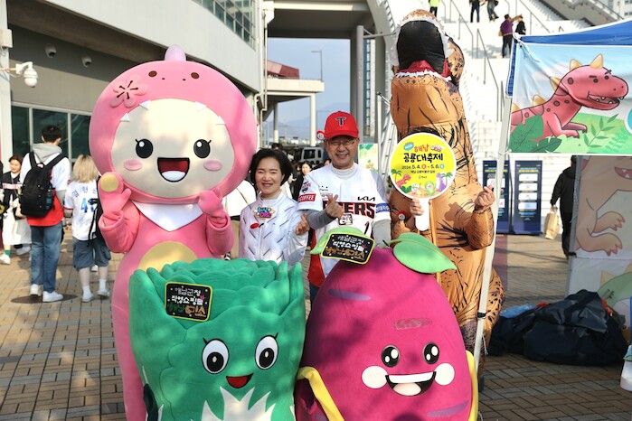 경기장 앞에는 오는 5월 4일부터 3일간 진행되는 제2회 해남공룡대축제를 비롯해 해남미소, 고향사랑기부제 등 홍보부스가 마련됐다. 명현관 군수를 비롯해 군 공직자로 구성된 홍보단 30여명은 공룡모양 옷을 입고, 해남공룡대축제 등 관광지와 함께 해남 농수특산물, 고향사랑기부 기부 등에 대한 열띤 홍보를 펼쳐 눈길을 사로잡았다.