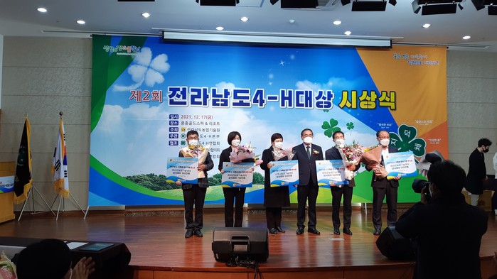 화순군(군수 구충곤)은 지난 17일 나주 중흥골드스파에서 열린 ‘2021년도 전라남도 4-H육성사업 종합평가’에서 화순군농업기술센터가 4-H육성 우수기관 대상을, 홍관호 화순군4-H연합회 회장이 4-H육성 도지사상을 수상했다고 밝혔다.
