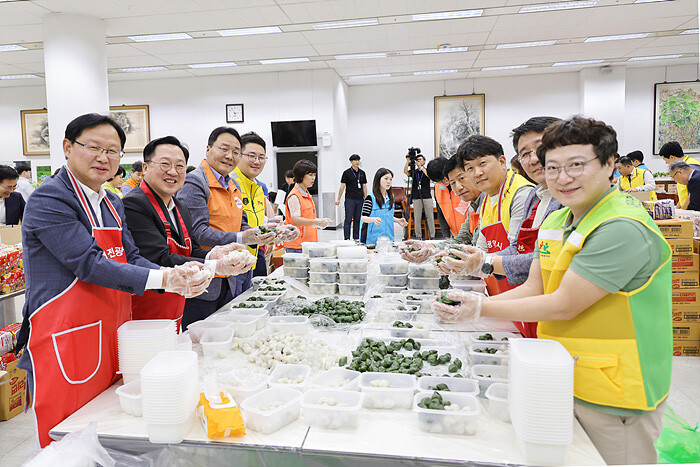 이날 기업 임직원 및 자원봉사자 70여 명은 보훈유공 재가복지대상자 및 독거노인 등 관내 취약계층 400세대를 방문해 정성스레 포장한 송편과 전, 과일, 제수용품 등이 담긴 선물 꾸러미(2100만원 상당)를 전달했다.