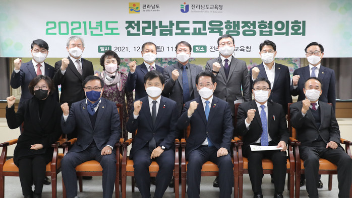 전남도는 20일 도교육청 상황실에서 공동의장인 김영록 도지사, 장석웅 도 교육감과 김정희‧조옥현 도의원 등 16명이 참석한 가운데 ‘2021년 전라남도 교육행정협의회’를 개최했다.