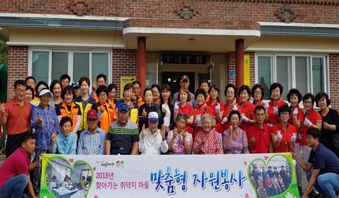 | ▲ 전남 해남군 산이면 금동마을에서 맞춤형 자원 봉사후 주민들이 기념 촬영을 하고 있다. <사진제공=해남군청> |