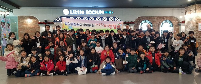 | ▲대구 '달성경찰서와 함께하는 따뜻한 다.정 캠프' 참여 아동들과 기념촬영을 하고 있다. (사진= 달성 경찰서 제공) |