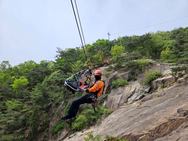 ▲ 산악구조훈련 모습(사진=경기도북부소방재난본부) |