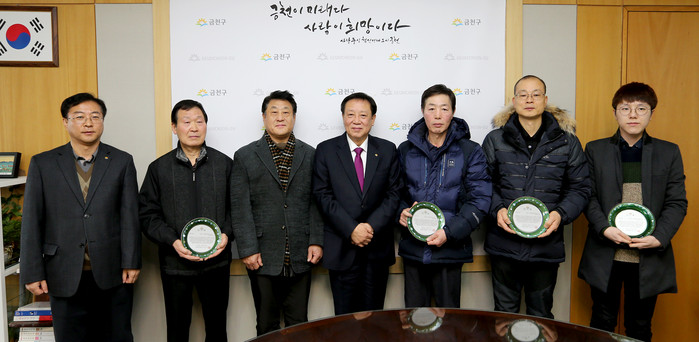 금천구(구청장 차성수)는 지난해 12월 9일 발생한 시흥1동 다가구주택 화재발생시 초기 화재진압 및 인명구조에 적극적으로 헌신했던 5명의 의인(義人)들에게 감사패를 증정했다고 밝혔다.