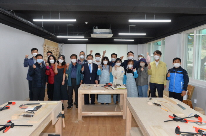| ▲박윤국 시장은 지난 21일 군내면 좌의리 포천 목공체험장 현장을 찾아 전문반 수강생 및 근무직원들을 격려하고 애로사항 등을 청취했다. (사진=포천시청 제공) |