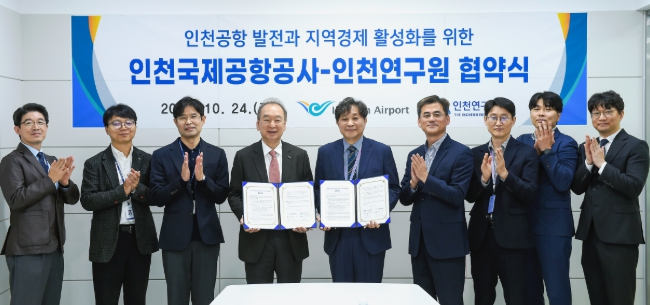 이날 협약식에는 공사 공항산업기술연구원 송치웅 원장, 인천연구원 박호군 원장을 비롯하여 양 기관 관계자 10여 명이 참석했다.