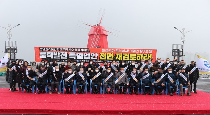 전국 어업인들은 일방적 해상풍력추진 반대 어업인 성명서를 통해 “그린뉴딜 정책에 힘을 얻은 민간 풍력업자들이 전국 바다 곳곳에 200여개 넘게 꽂아 놓은 풍황계측기 때문에 생계 터전에 위협을 받고 있다”면서 민간주도로 이뤄지고 있는 해상풍력 개발방식을 즉각 폐지해 줄 것을 촉구했다.