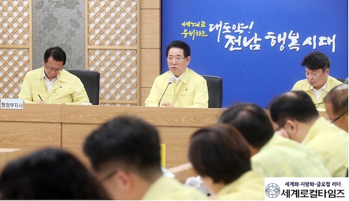 [세계로컬타임즈 김명진 기자] 김영록 전남도지사가 17일 실·국별 대책회의를 열어 시·군·소방·경찰 등과 유기적 협력을 통한 현장 대응 강화를 지시하고 호우 피해 노인복지시설도 점검했다.