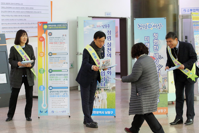 남동구 관계자는 “오늘 캠페인을 통해 공직자 스스로 청렴수준 및 청탁금지법의 필요성을 깨닫고 실천의지를 다지는 계기가 되길 바란다”며 “부정부패 없는 공정하고 희망찬 남동구 공직사회를 만드는데 최선을 다하겠다”고 말했다.