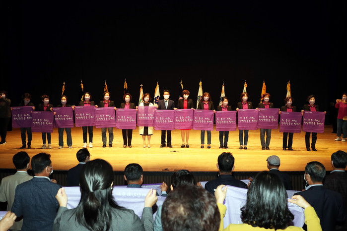 1부 행사에서는 21세기 남녀평등 헌장 낭독에 이어 표창장과 감사패 수여식, 홍천군 양성평등 및 여성친화도시를 염원하는 참석자 모두의 퍼포먼스가 진행됐다.