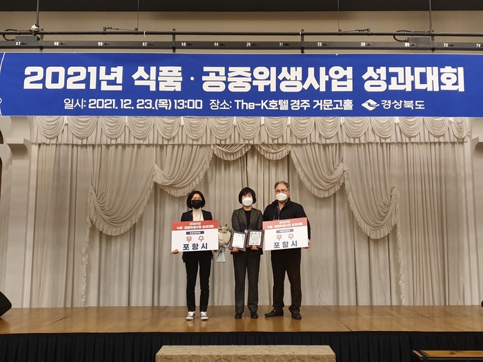 [세계로컬타임즈 이장학 기자] 포항시는 23일 경상북도가 주관한 2021년 식품‧공중위생관리 평가에서 안전분야에서 ‘우수상’과 안심식당 운영 우수시군평가에서 ‘우수상’을 각각 수상했다고 밝혔다.