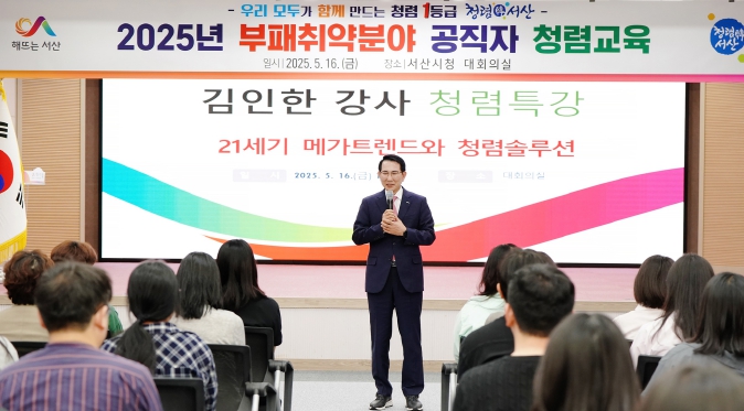 [세계로컬타임즈] 충남 서산시는 16일 시청 대회의실에서 ‘2025년 부패취약분야 공직자 반부패·청렴 교육’을 추진했다고 밝혔다.