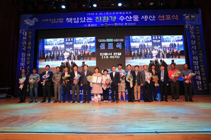 | ▲ 완도군이 30일 완도전복 ASC국제인증 취득 기념 및 책임있는 친환경 수산물 생산 선포식을 개최했다.(사진=완도군청 제공) |