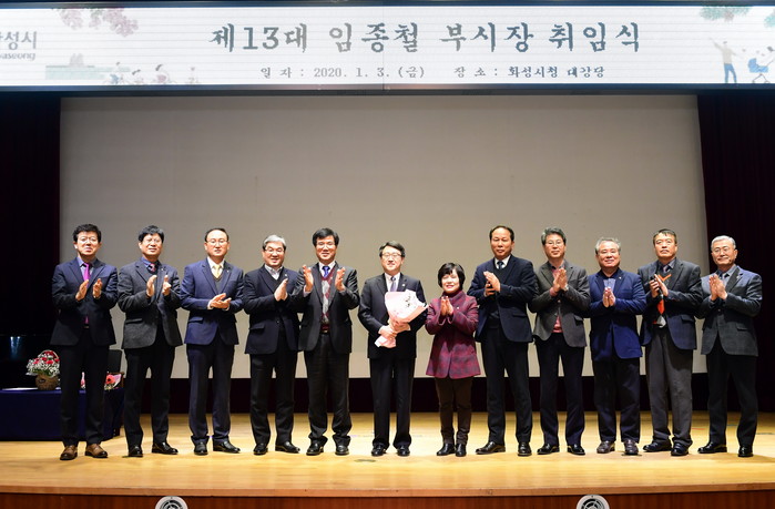 | ▲ 임종철 화성부시장이 취임식후 기념촬영을 하고 있다. (사진=화성시 제공) |