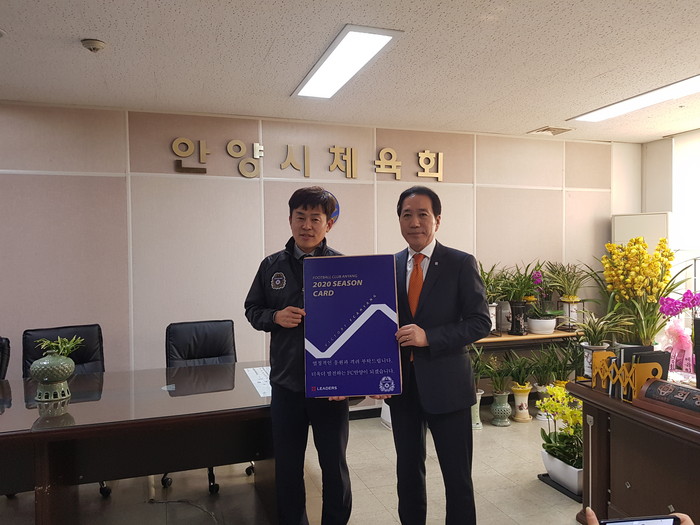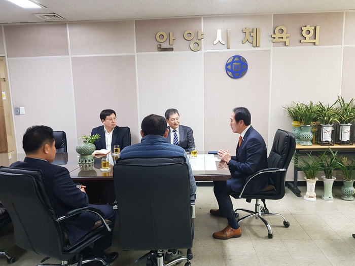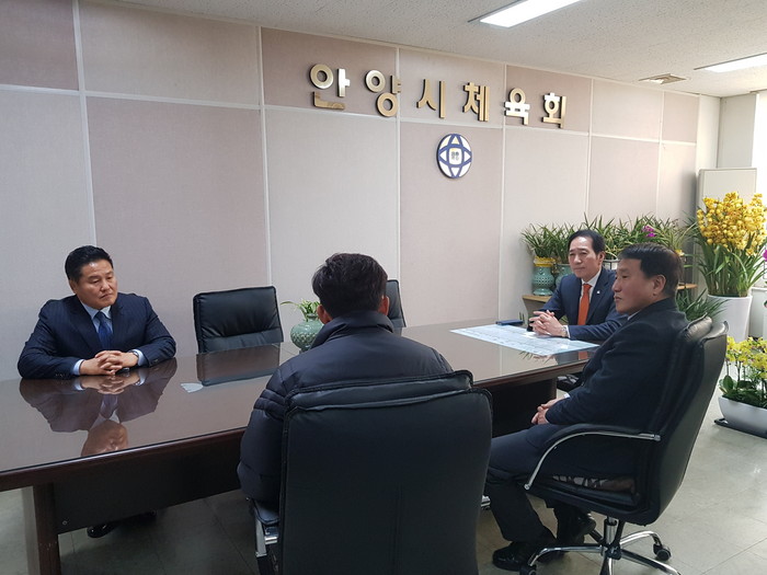 이어 FC안양 연간회원권 구매와 관련 체육회 사무국장, 안전행정국장, 체육과장, FC안양 단장 등이 참석해 애로사항과 운영 관련 간담회가 열렸다.