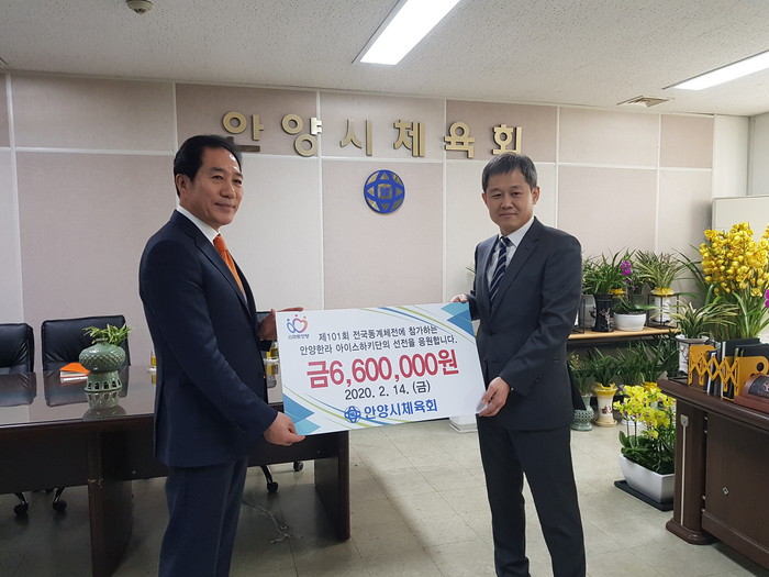 [세계로컬타임즈 글ㆍ사진 최성우 기자] 안양시체육회 박귀종 회장은 안양 한라아이스하키단 제101회 동계체전 출전 격려와 FC안양 연간회원권 구매 관련 행사를 가졌다.