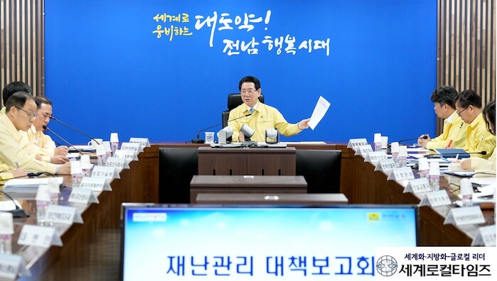 [세계로컬타임즈 김명진 기자] 김영록 전남도지사가 “이번에 비가 와서 산불이나 가뭄에 대해 한숨 돌렸지만 느슨해지지 말고 가뭄이 끝날 때까지 지속해서 가뭄대책을 추진할 것”을 당부했다.