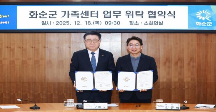 [세계로컬타임즈] 화순군은 18일 화순군청 소회의실에서 (사)다사랑건강가정복지협회(회장 김종식)와 화순군 가족센터 업무 위탁 협약을 체결하고, 가족 지원 정책의 안정적 추진과 지역사회 돌봄 기반 확충에 나섰다고 밝혔다.