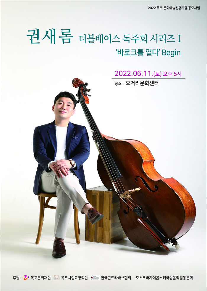 [세계로컬타임즈 김명진 기자] 오는 6월 11일 오후 5시 목포 오거리 문화센터에서 권새롬 더블베이스 독주회가 열린다.