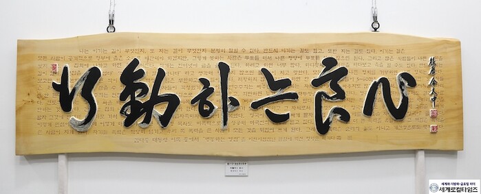 이번 전시는 김대중 대통령의 어록 일부를 서각 작품으로 창작했으며 벽산 정형준 외 18명의 작가가 참여했다.