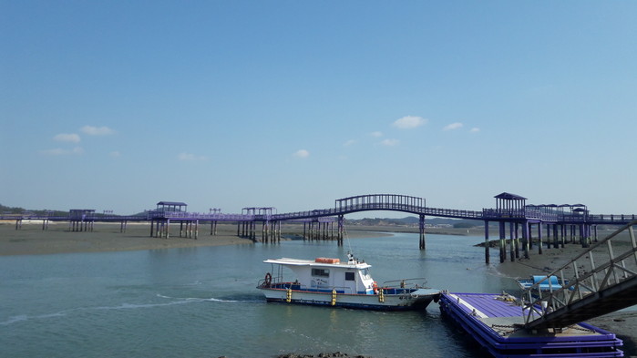 그런데 이 다리들은 퍼플교란 명칭에서 드러나듯, 온통 보랏빛으로 칠해져 있다. 이 같은 색상은 주변의 바다 및 잿빛의 갯벌과 어우러져 독특한 풍광을 연출하고 이는 많은 방문객을 유인하는 요인이 되고 있다.
