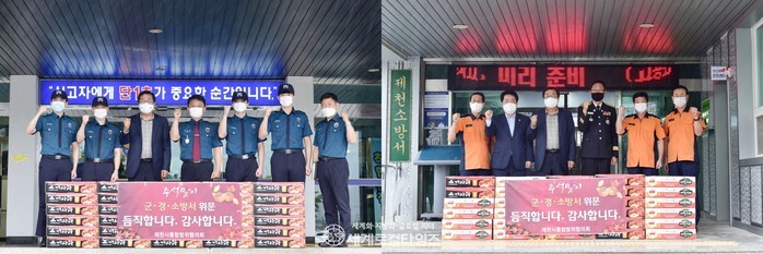 [세계로컬타임즈 김병호 기자]제천시 통합방위협의회는 17일, 민족 고유의 명절인 추석을 맞아 지역 방위태세 확립과 민생치안 유지에 전념하고 있는 군.경.소방서 위문을 실시했다.