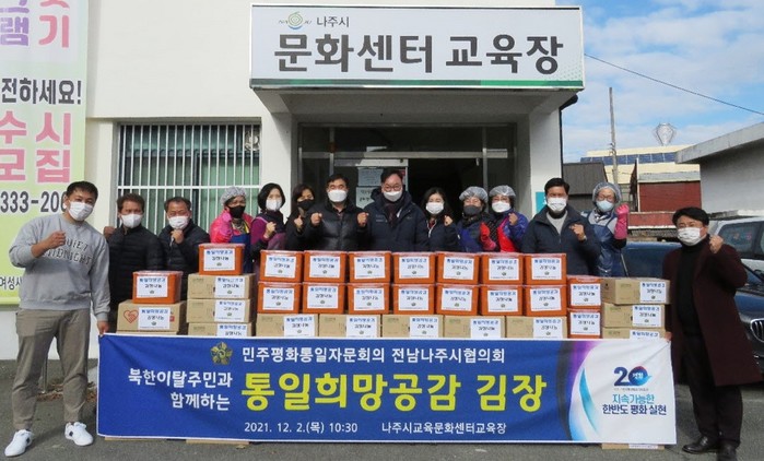민주평통 나주시협의회와 나주시, 나주경찰서의 협조로 나주시문화센터교육장에서 진행한 이번 행사는 고향을 떠나 겨울을 맞이하는 북한이탈주민들의 안정적 정착과 지역 사회의 따뜻한 정을 나누는 계기가 되기를 바라는 마음으로 기획됐다.