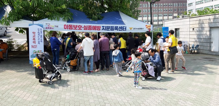 | ▲ 수성경찰서는 5월 가정의달을 맞아 실종아동예방을 위한 지문등록과 함께 홍보활동을 전개했다. (사진=수성경찰서 제공) |