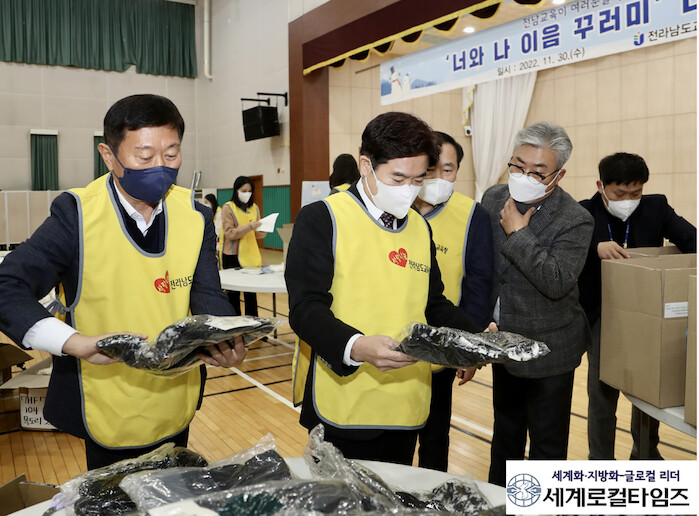 1일 전남교육청에 따르면 2013년부터 지난해까지 매년 ‘사랑의 김장 담그기’ 행사를 통해 학생가장 및 위탁가정 학생들에게 김치를 전달했으나 올해는 ‘너와 나 이음 꾸러미’라는 사업으로 변경해 지난달 30일 진행했다.