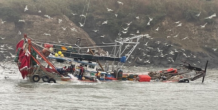 24일 목포해양경찰서(서장 이종욱)에 따르면 지난 23일 오후 5시 32분께 신안군 임자도 서쪽 1.1km 인근 해상에서 연안개량안강망 어선 A호(7.93톤, 승선원 5명)가 암초에 좌초돼 침수 중이라는 신고가 접수됐다.