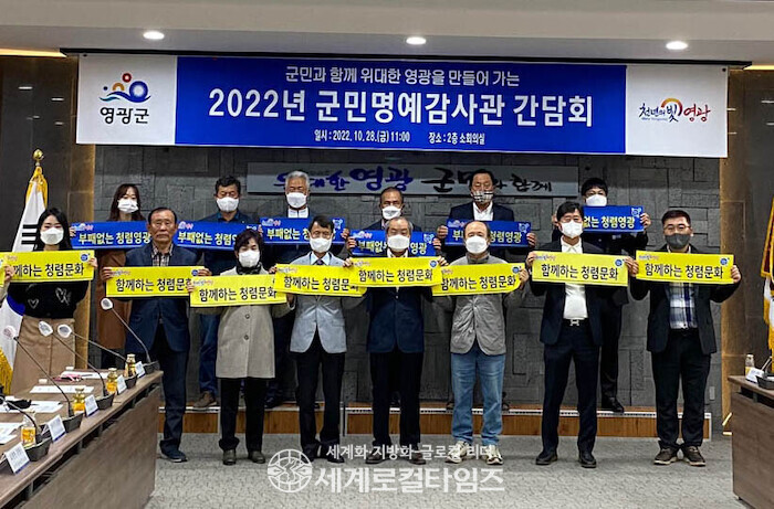 [세계로컬타임즈 이남규 기자] 전남 영광군이 28일 오전, ‘청렴한 영광 실현’을 위한 군민명예감사관 간담회를 개최했다.