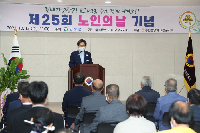 [세계로컬타임즈 김봉관 기자] 전북 고창군이 주최하고, 대한노인회 고창군지회가 주관하는 ‘제25회 노인의 날 기념행사’가 ‘힘내라 고창군! 코로나19, 우리 함께 이겨요!!’를 주제로 13일 열렸다.