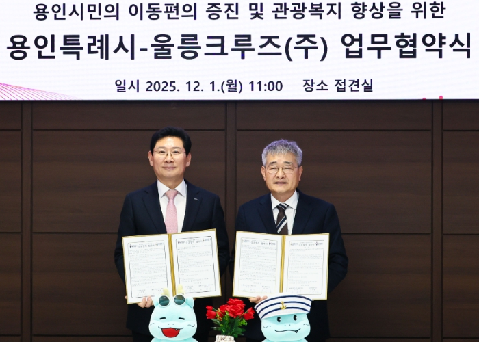 이 시장은 "협약을 계기로 용인에서 더 많은 분들이 울릉군을 찾아 천혜의 자연환경을 즐기고, 울릉군 지역경제에도 도움을 주면 좋겠다"고 했다.