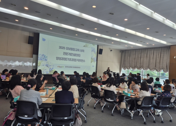 경기도교육청(교육감 임태희)이 유보통합의 원활한 추진과 현장 맞춤형 지원을 위해 ‘2025 유보통합 교육‧보육 전문가 양성과정 직무연수’를 운영한다. 유치원과 어린이집 현장을 통합적으로 이해하고 지원할 수 있는 컨설팅 전문가 양성을 위한 기초과정이다.