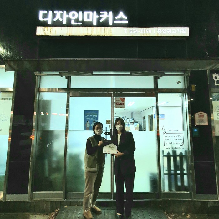 디자인마커스는 광고물제작 전문업체로, 지역사회 내에서도 나눔 실천에 앞장서는 매장으로 알려져 있다.