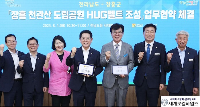 [세계로컬타임즈 김명진 기자] 전라남도는 1일 도청 서재필실에서 장흥 천관산 도립공원 H·U·G벨트 조성사업의 성공적 추진을 위해 장흥군과 업무협약을 했다.
