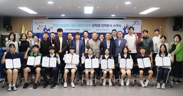 지역의 생활폐기물 수집ㆍ운반을 통해 쾌적한 도시를 만들어주는 안양시생활폐기물수집운반협회 11개 기업(세명개발, 동양환경, 대정개발, 원진개발, 성일기업, 안양위생, 현대산업, 한우실업, 중앙개발, 남영개발, 합동환경)은 작년에 이어 올해도 재단에 장학금을 기탁해 장학생을 선발했다.