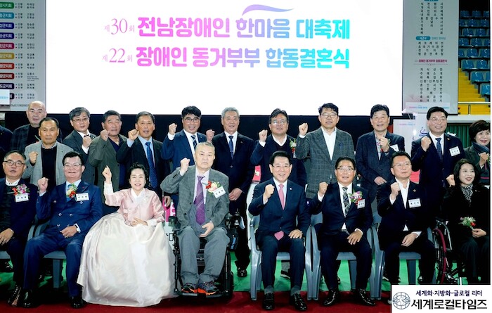 [세계로컬타임즈 김명진 기자] 전라남도는 23일 순천 팔마체육관에서 제30회 전남 장애인 한마음 대축제 및 제22회 장애인 동거부부 합동결혼식이 개최됐다고 밝혔다.