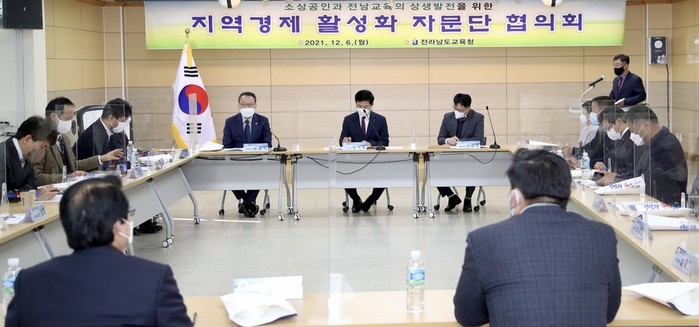 [세계로컬타임즈 강석운 기자] 코로나19로 인해 어려움을 겪고 있는 지역 업체를 돕기 위해 지난 6월 구성된 전라남도교육청 지역경제활성화 자문단이 6일 영암교육지원청에서 협의회를 열고 발전 방안을 모색했다.