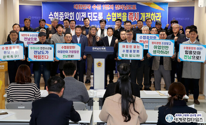 [세계로컬타임즈 김명진 기자] 전남도가 “13일 전남도의회 브리핑룸에서 전라남도어촌계협의회, (사)한국수산업경영인전라남도연합회, 전라남도수협협의회가 기자회견을 열고 수협중앙회 전남 이전을 촉구했다”고 밝혔다.