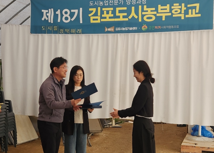 [세계로컬타임즈] 김포시가 지난 25일 고촌읍 풍년농장 교육장에서 제18기 도시농부학교 수료식을 성황리에 개최했다. 이번 수료식에서는 총 32명의 수강생 중 29명이 수료하고, 도시농업 전문가로서 첫걸음을 내디뎠다.