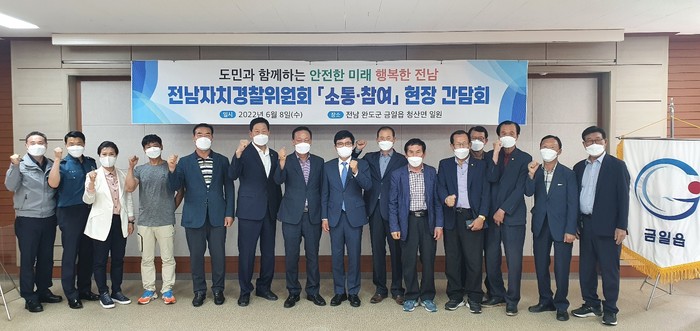 전남도자치경찰위원회는 지난 8일 전남 완도 금일・청산 등 섬 지역을 방문해 현장 특성에 따른 치안서비스 애로사항을 청취하고 치안 현장을 점검했다.